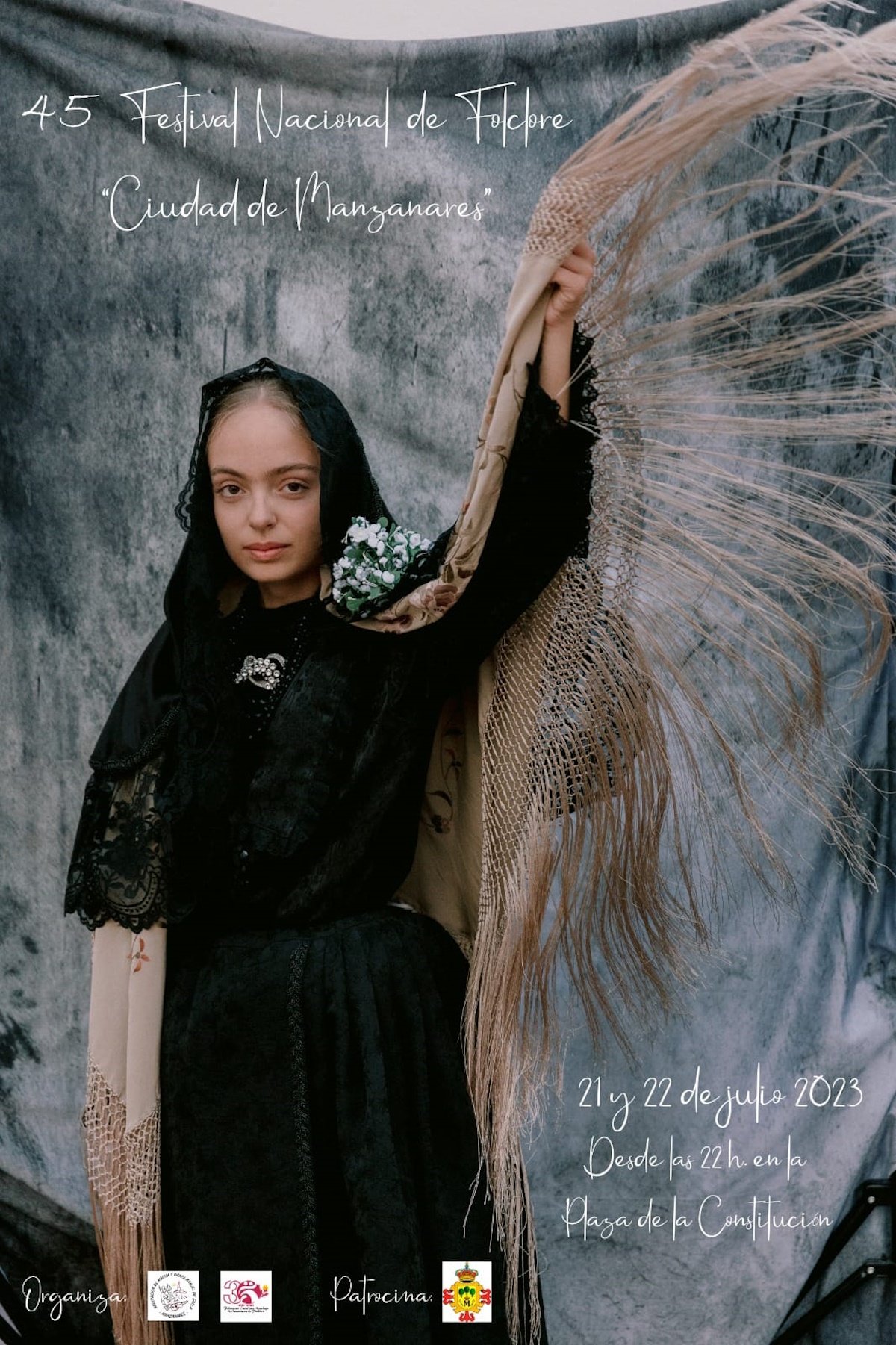 El cartel anunciador de esta 45ª edición del festival es obra del fotógrafo manzanareño Germán Molina, a quien la Agrupación ‘Manuel de Falla’ agradece el resultado. Se trata de la imagen de una joven componente del grupo.