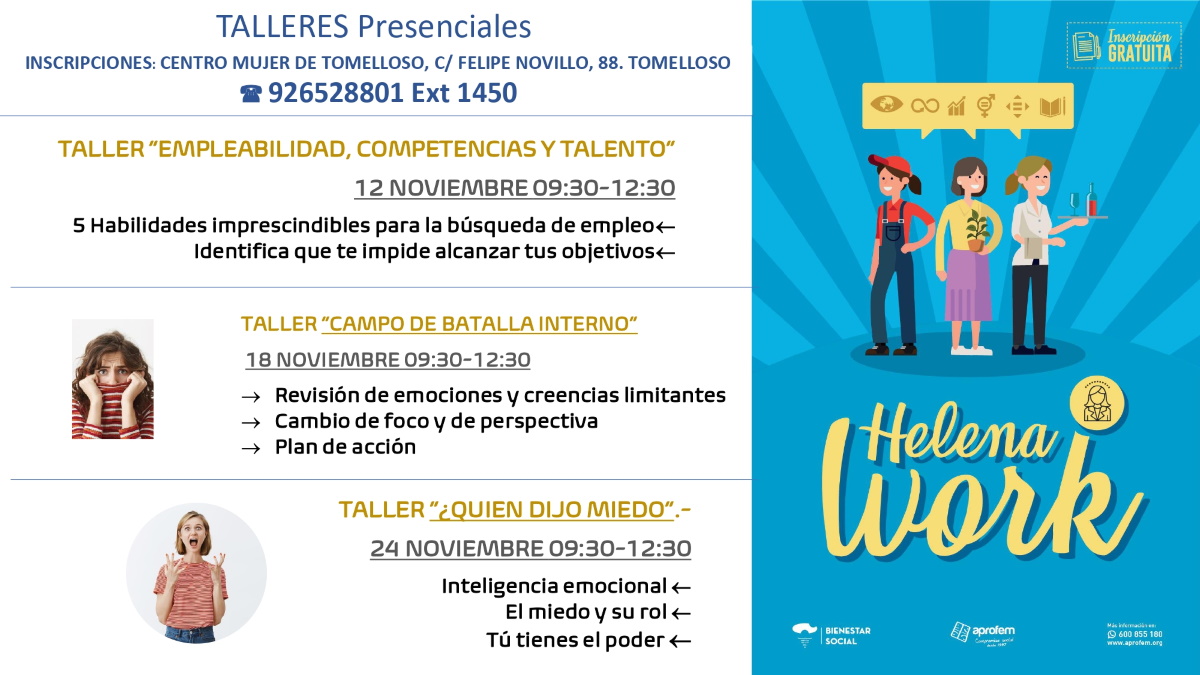 También se realizarán talleres de empleabilidad para empoderar a las mujeres que están desempleadas y manejar las debilidades que pueden aparecer en la búsqueda de empleo. Serán tres talleres realizados por APROFEM (Programa gratuito subvencionado por la Consejería De Bienestar Social).