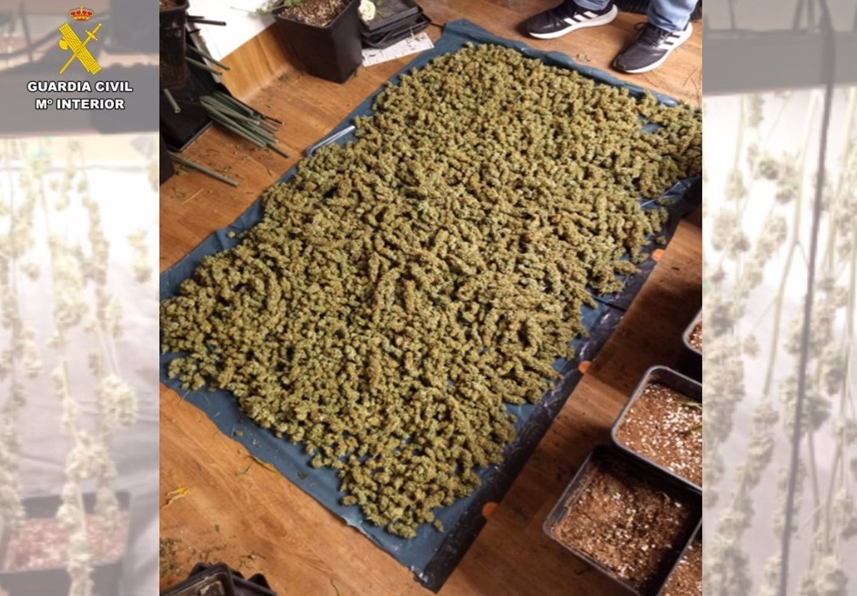 En el operativo, las autoridades realizaron tres registros simultáneos en los que se incautaron dos plantaciones de marihuana en interior, 7 kilogramos de cogollos listos para su distribución, 1.360 pastillas de clonazepam, recetas falsificadas, sellos médicos, 12.000 euros en efectivo y un vehículo de alta gama.
