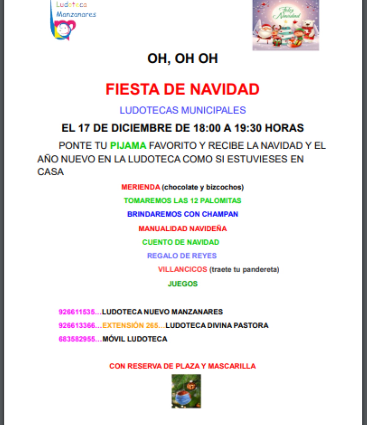 Las ludotecas municipales de Manzanares (Ciudad Real) también están disfrutando las fechas por llegar. Y han organizado una Fiesta de Navidad para el día 17 de diciembre. En horario de 18 a 19:30 horas.