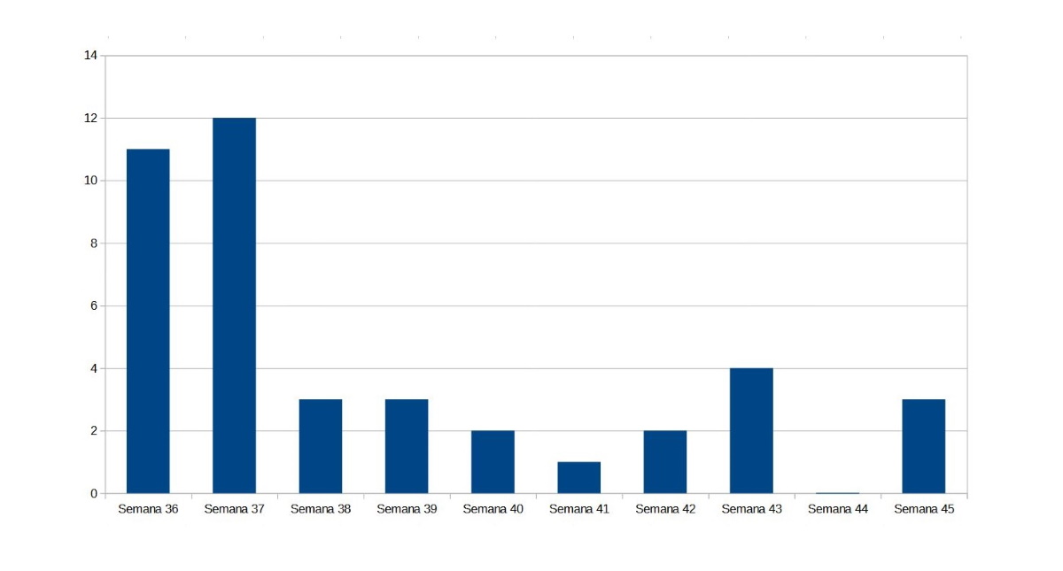 Además, los datos de la semana 45 indican que nuestra localidad cuenta con una tasa de incidencia semanal y acumulada de 16,7 casos por cada 100.000 habitantes, al no haber registrado ningún caso en la semana 44. A catorce días, estas cifras nos colocan 5 puntos y medio por debajo de la incidencia acumulada del período anterior, que se situaba en 22,27 casos por cada 100.000 habitantes .