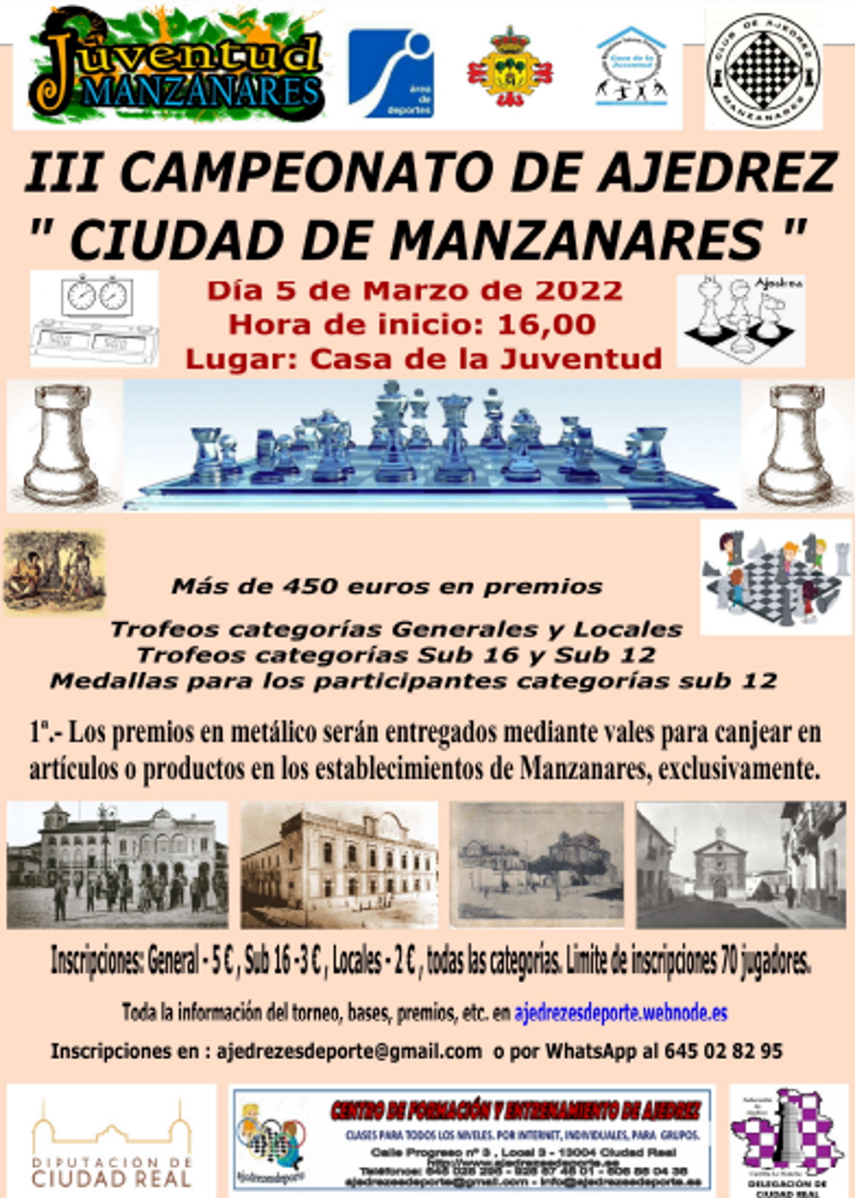 El 5 de marzo tendrá lugar el II Campeonato de Ajedrez “Ciudad de Manzanares” organizado por “Ajedrezesdeporte”, Centro de Formación de Ajedrez. Será en la Casa de la Juventud de Manzanares (Ciudad Real) a las 16 horas.