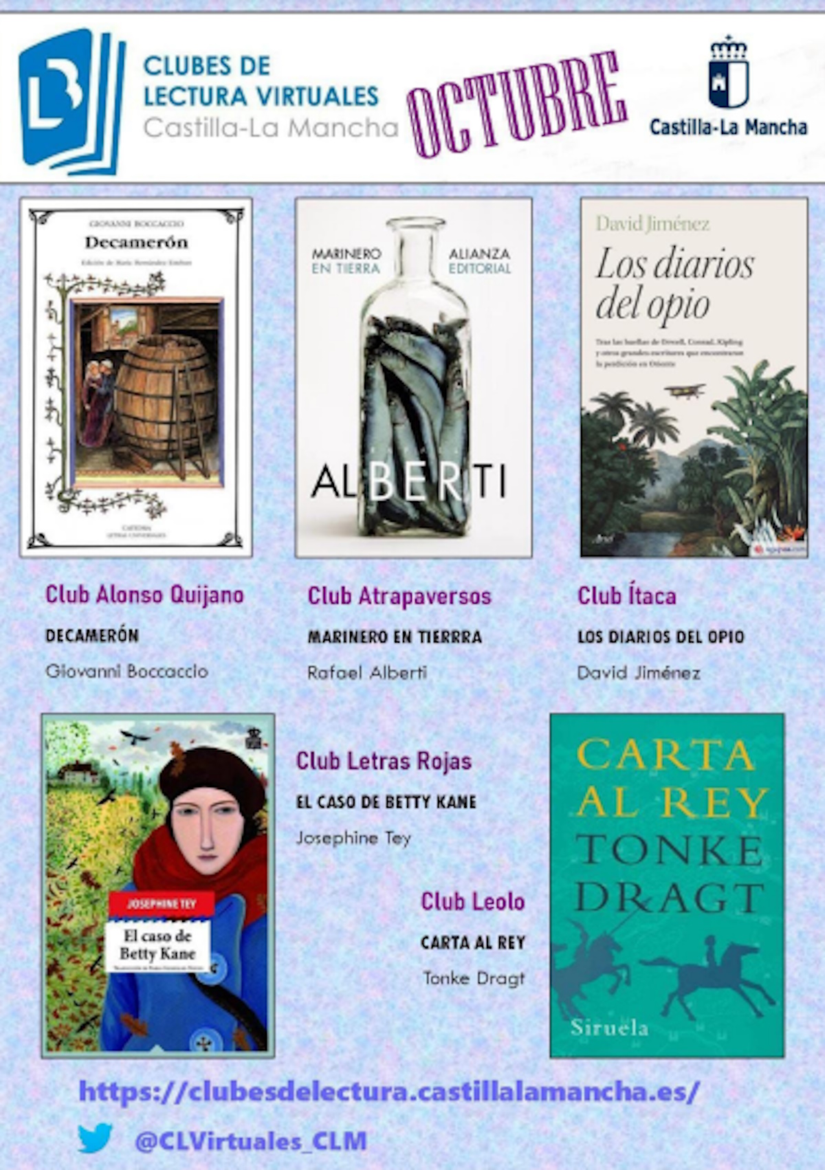 Podrás disfrutar de grandes clásicos como “El Decamerón” de Boccacio en el Club Alonso Quijano. También “Marinero en tierra” en el Club Atrapasueños. “Los diarios del opio” con el Club Club Ítaca. “El caso de Betty Kane” en el Club Letras Rojas. Y “Carta al rey” en el Club Leolo.