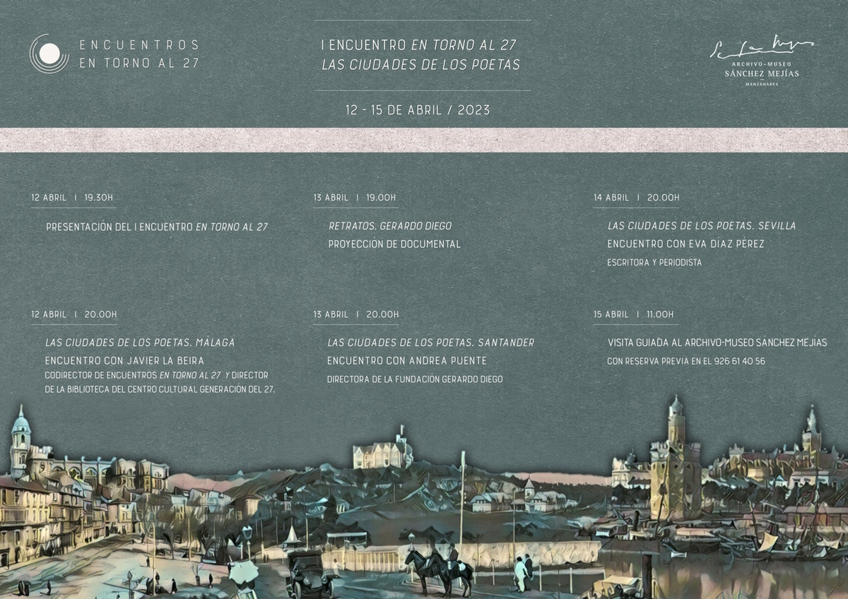 De ahí que desde el área de Museos se hayan elegido estas tres ciudades para protagonizar el primer encuentro ‘En torno al 27’, que se celebrará del 12 al 15 de abril con el archivo-museo ‘Sánchez Mejías’ como escenario. C1+C2 La presentación de este evento, bautizado como ‘Las ciudades de los poetas’, tendrá lugar el miércoles 12 a las 19:30 horas.