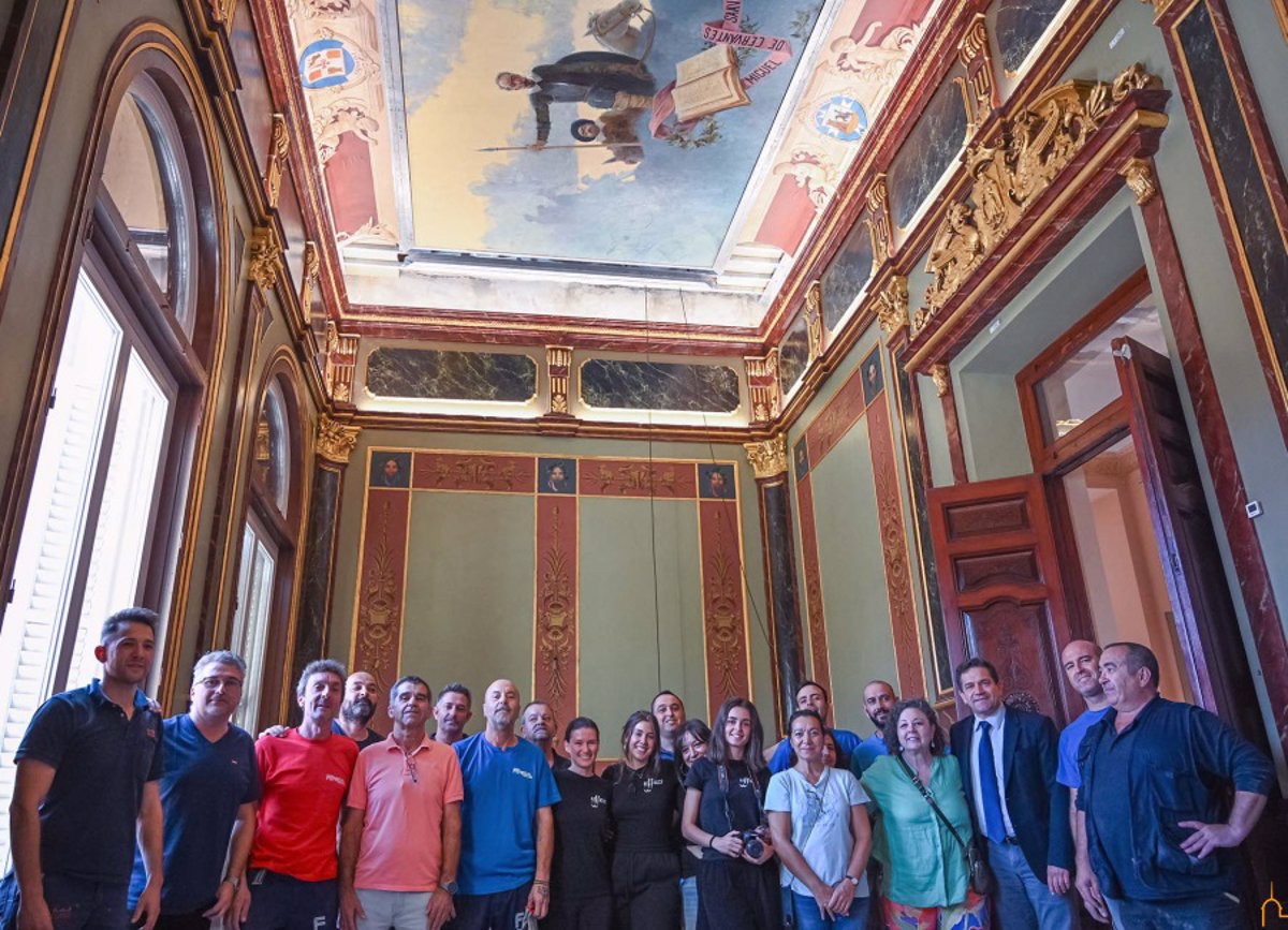 La complejidad de la maniobra de volteo y izado del cuadro ha requerido algunos ajustes, pero finalmente el lienzo ha sido colocado en su lugar original. Tanto los trabajadores que han participado en el proyecto como los funcionarios que prestan servicios en el Palacio Provincial han seguido con expectación y emoción el desarrollo de los trabajos.