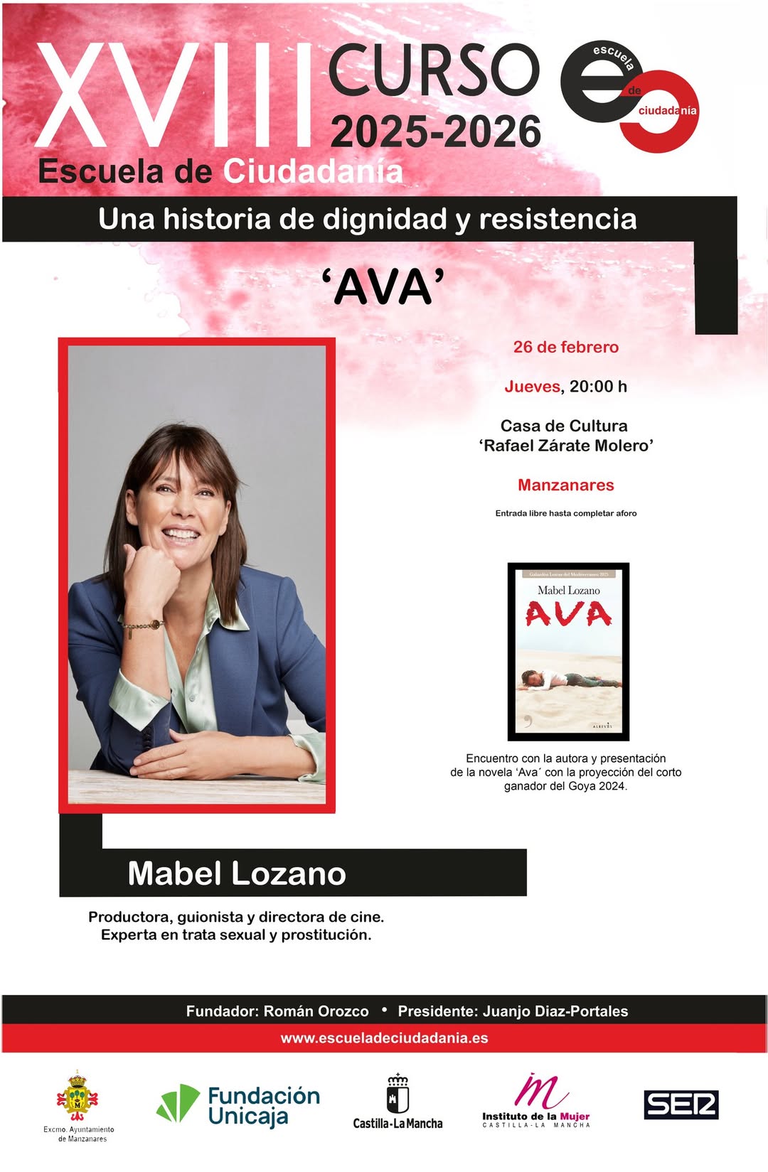 El jueves 26 de febrero a las 20:00 horas, la afamada autora Mabel Lozano hará su aparición en la Escuela de Ciudadanía con su última y primera obra de ficción titulada ‘Ava’.